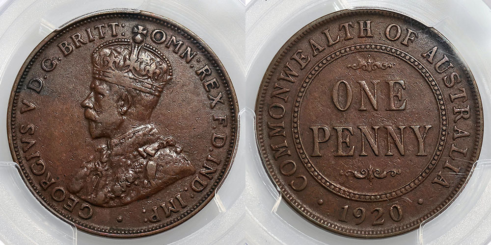 Penny. 1921. English Obverse. PCGS graded VF 30...