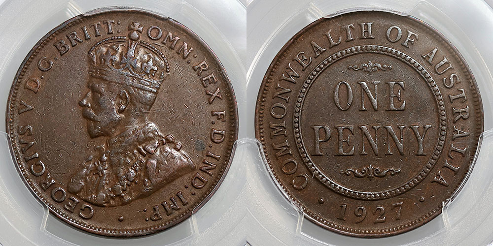 1927. Indian Obverse. PCGS graded VF 35 (35075194). Brown with six pearls.