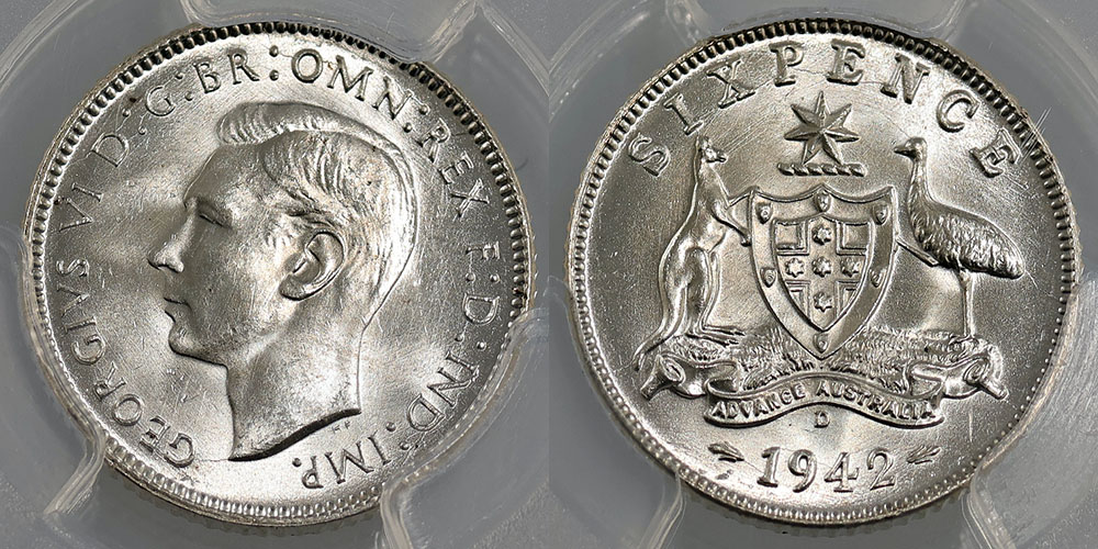 Sixpence. 1942D, 1942S (dark toned), 1943D,...