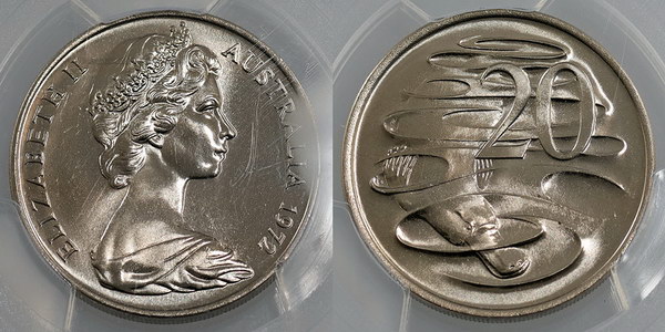 Twenty Cent. 1970. APCGS graded MS 66. Light...