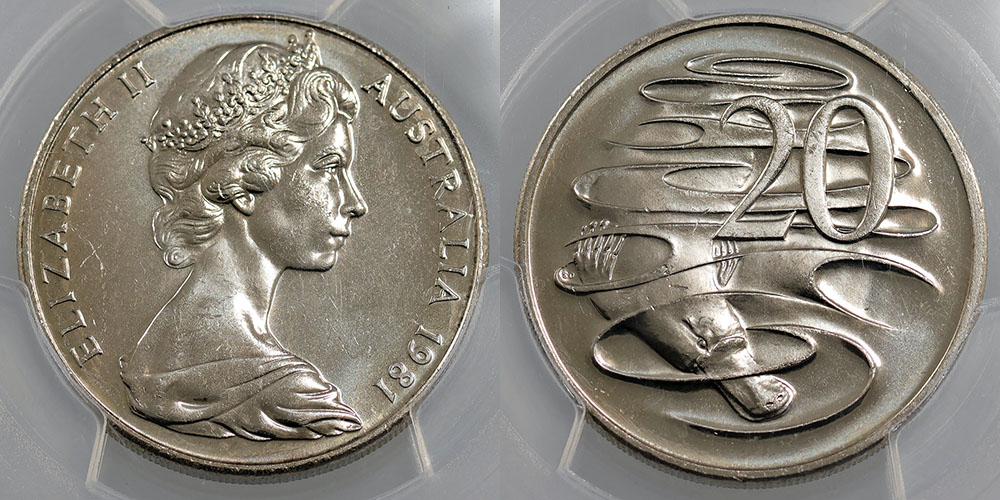 Twenty Cent. 1981 Proof 20 Cent, 3.5 Claw...