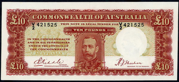 | Lot: 988 Category: Australian Superior Pre Decimal Banknotes > Ten Pound |