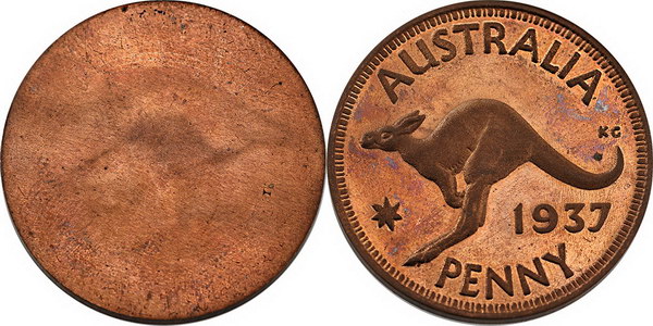 1937 Penny Reverse uniface Pattern. Struck in copper by notorious forger David Gee. Mostly red. Rare.