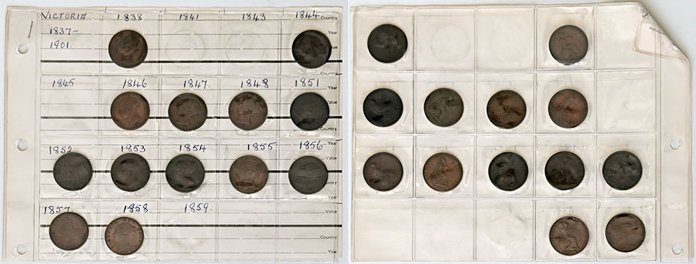1838, 1844, 1846, 1847, 1848, 1851, 1852, 1853, 1854, 1855, 1856, 1857, 1858 Victoria. (13 coins total).