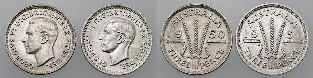 1950, 1951PL. Light tone with bloom. (2 coins total).