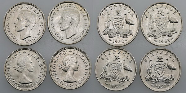Sixpence. 1942D, 1943D (3). Light tone with...