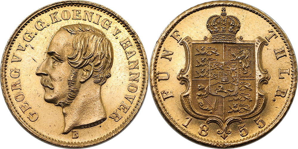 Germany 5 Thaler 1855B. Hanover. (Weight ???). Appears to be a forgery/copy.
