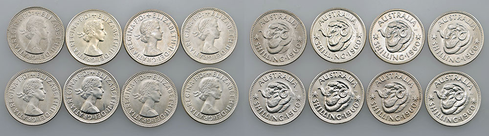 Shilling. 1961. Light tone with bloom. (4 coins...