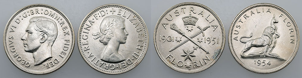 1951 Federation, 1954 Royal Visit. Bright bloom. (2 coins total).