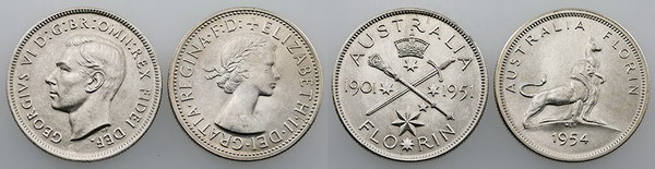 1951 Federation, 1954 Royal Visit. Bright bloom. (2 coins total).