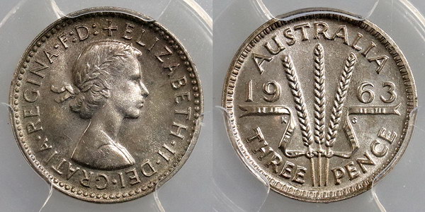 Threepence. 1963 Proof Threepence. PCGS graded...