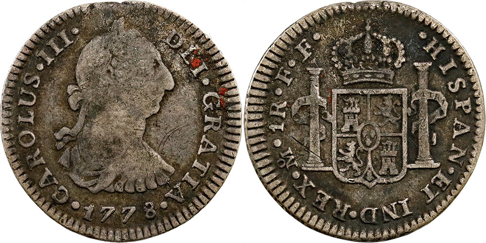Mexico 1 Real 1778FF. Charles III, Mexico Mint. Dark toned.