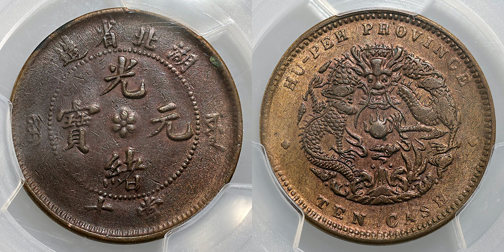 China 10 Cash Hupeh Province N/D (1902-05) Water Dragon Variety. PCGS graded Genuine - Cleaned - XF Detail (46158166).