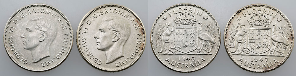 1945, 1947. Light tone with some bloom, some marks. (2 coins total).