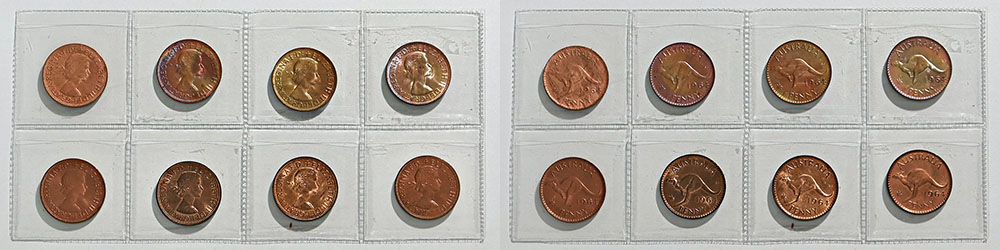 1964 (4), 1964Y (4). Mostly mint red/mint red and brown. (8 coins total).