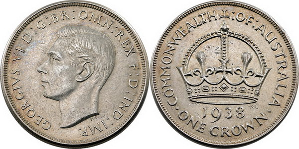Crown. 1938. Light tone, cuts on Kings face.