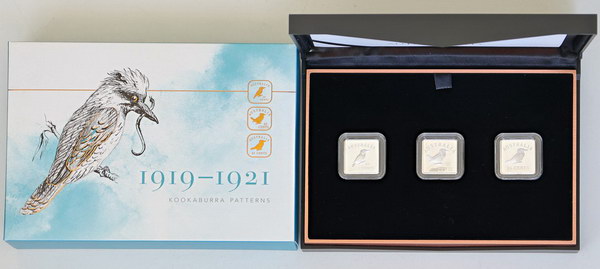 2019 Kookaburra Patterns 25 Cent 1/4 oz silver 3-coin Proof set. In RAM box of issue with COA.