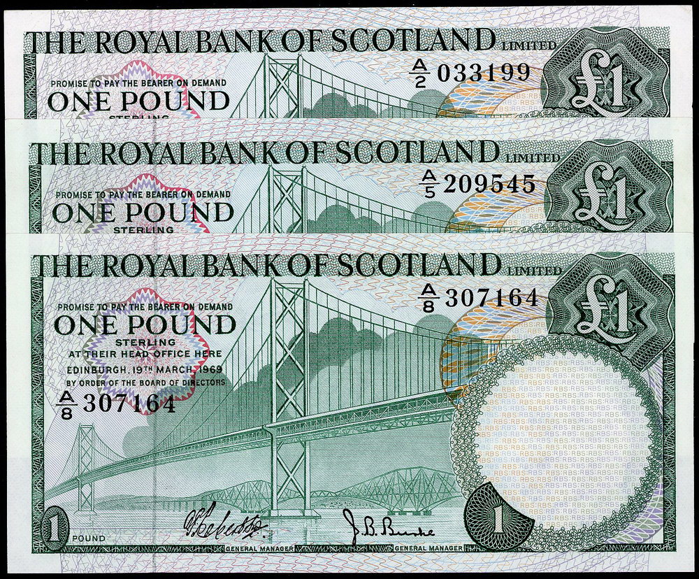 Scotland Royal Bank 1 Pound 1969 (P 329a). (3 notes total).