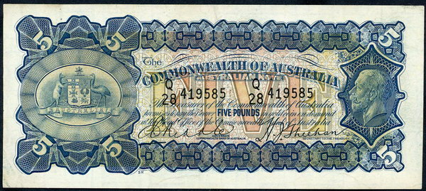 | Lot: 965 Category: Australian Superior Pre Decimal Banknotes > Five Pound |