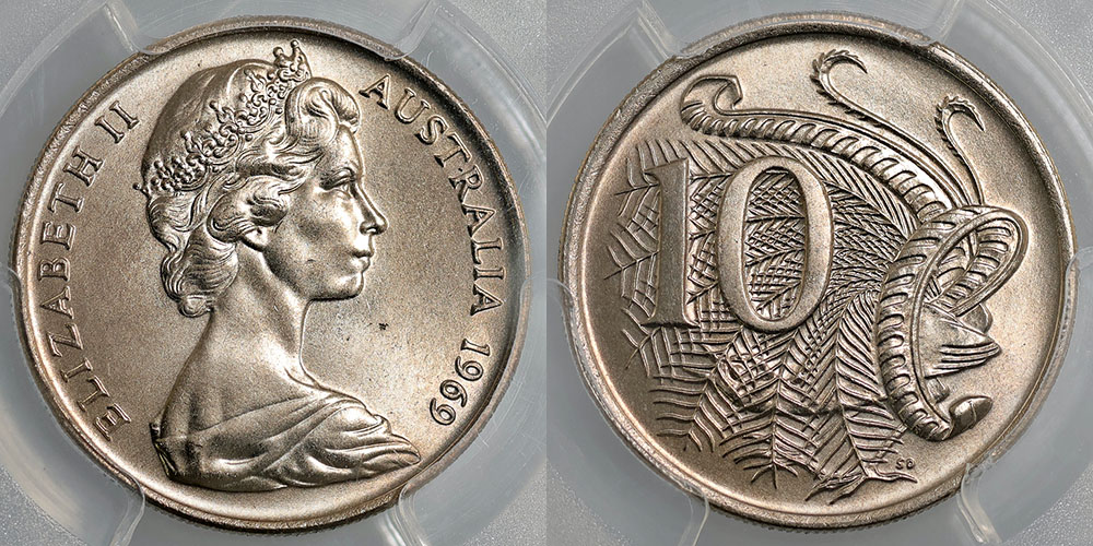 1969. PCGS graded MS 66 (35700635). Light tone.