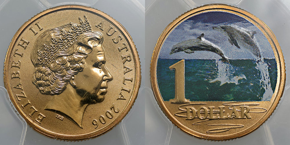 2006 Ocean Series: Dolphin coloured. PCGS graded MS 67 (44923016).
