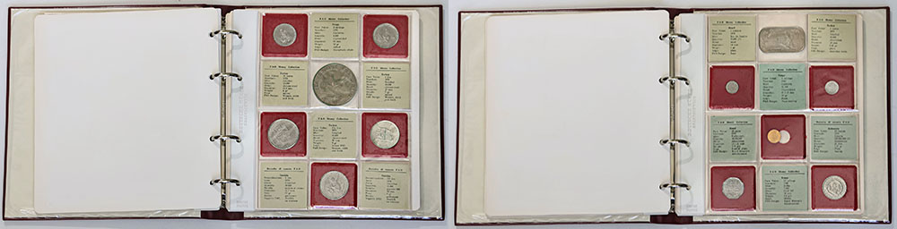 | Description: FAO Money Collection 1979, album number I (6 pages with 36 coins). The first issue of the second series, issued in conjunction with the United Nations and the Food and Agricultural Association. Each 1-2 pages were sold by subscription, some pages with quite low mintage figures. In red album of issue, some coins toned. Includes Tonga gold 20 Paanga (0.8g), cu-ni Humpback Whale 2 Paanga and 3 silver. Rare. UNC |