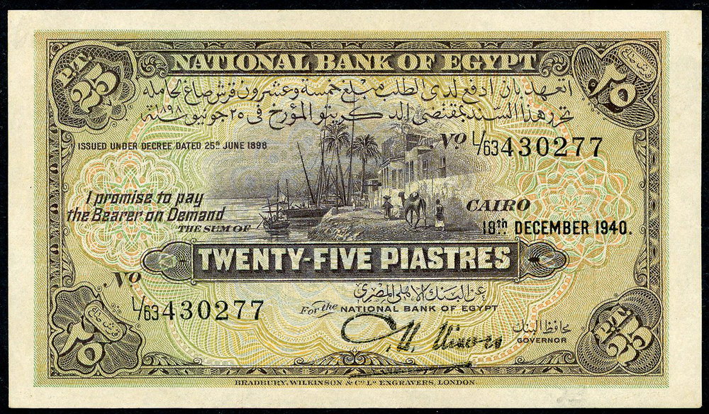 Egypt 25 Piastres 18-12-1940 (P 10c). Light handling and fold.