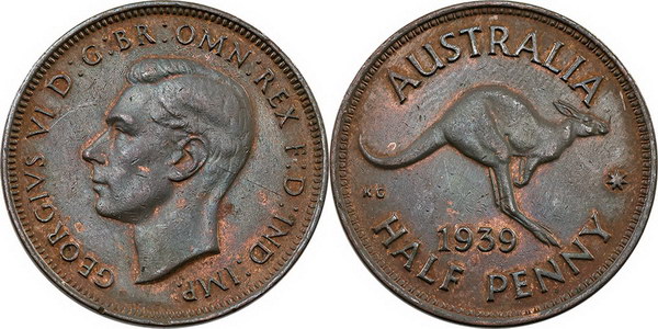 Halfpenny. 1939 Roo. PCGS graded AU 55...