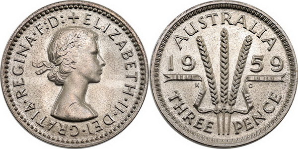 Threepence. 1959 Proof Threepence. PCGS graded...