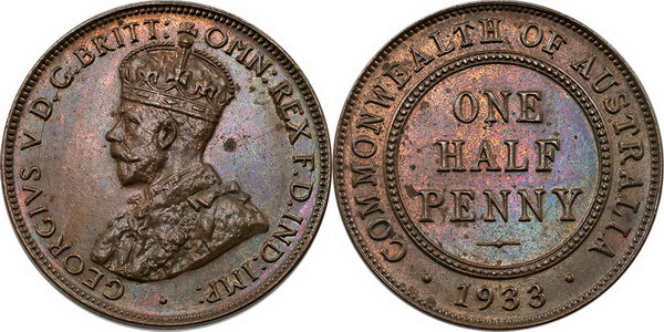 Halfpenny. 1928, 1933. Brown. (2 coins total).