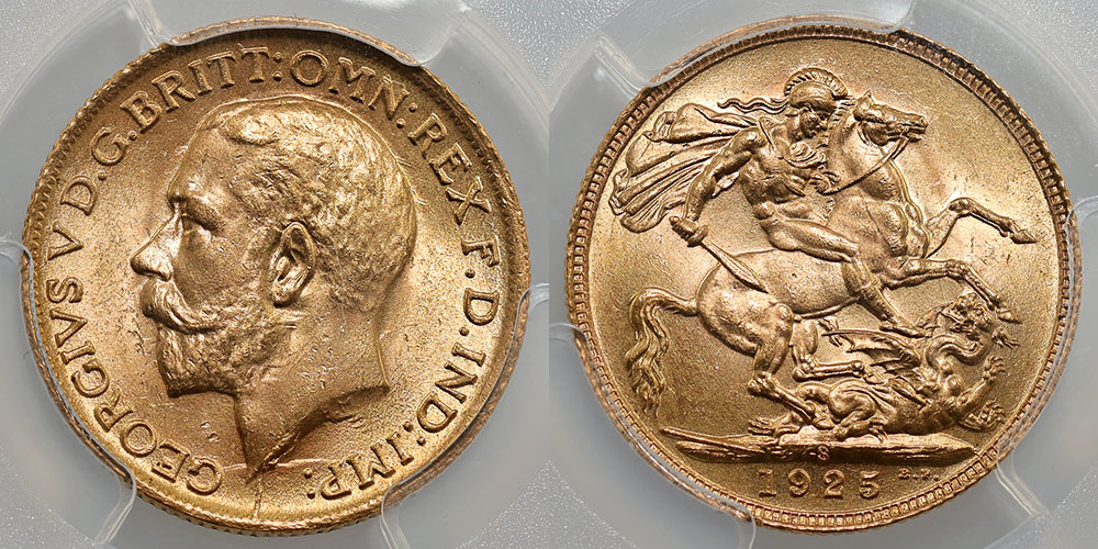 1925S St George Reverse. George V. PCGS graded MS 64 (61265566). Soft bloom.