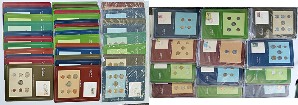 | Description: Coin Sets of All Nations Franklin Mint Unc world coin sets on information cards, 1980s. Includes UK, NZ, Portugal, Antigua, Isle of Man, Hong Kong, China, Japan, Malaysia, Israel, Canada, Ecuador and many others. Includes some duplicates and info cards, but no set boxes. (Approx 205 items total). UNC |