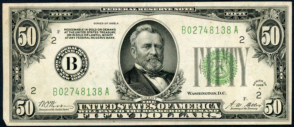 United States 50 Dollars 1928A (P 423a). Gold...