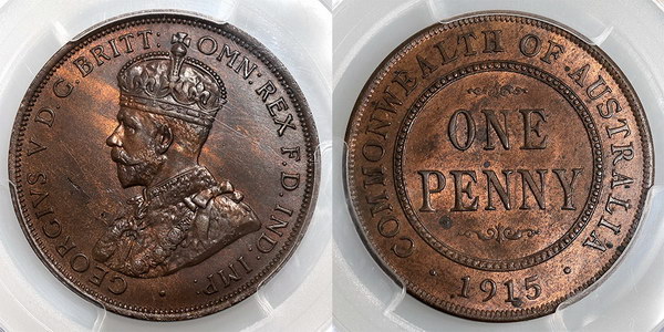 1915. PCGS graded MS 63 BN (81053116). Dark brown with hints of mint red lustre. Scarce the grade.