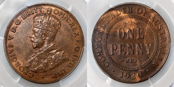 Penny. 1920 Double Dot. Brown, six pearls and...
