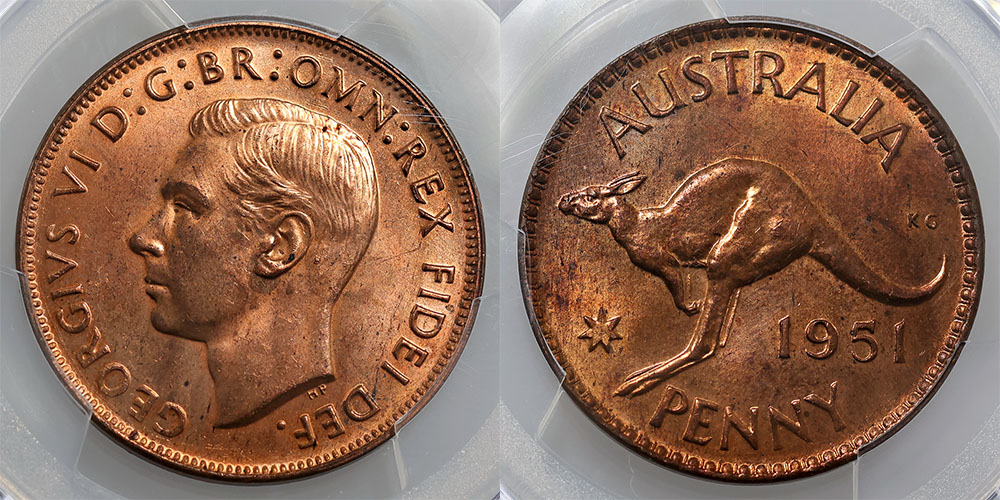 1951. PCGS graded MS 64 RD (51261008). Almost full bright mint red.