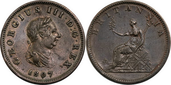 1807 Halfpenny George III. Some light surface rubbing.