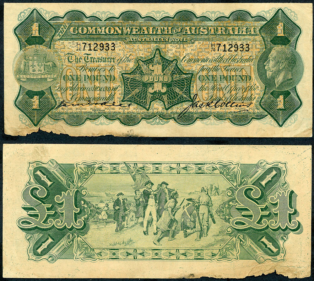 One Pound. 1923 Miller-Collins (R 23b). Small H...