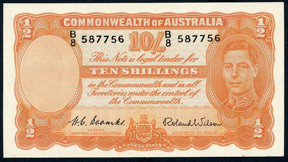 Ten Shillings. 1949 Coombs-Watt G/96 (R 14sF)....