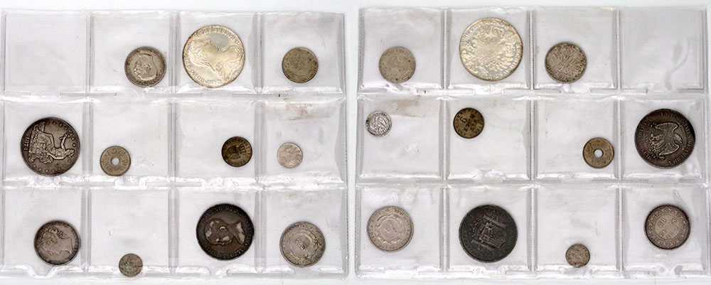 | Description: Austria 2 Corona 1913, Maria Theresa restrike Thaler (1780), China Kwang-tung Province 20 Cents (1912-24), Costa Rica 1 Colon 1903, Egypt 2 Milliemes 1916H, German States Hesse-Darmstadt 6 Kreuzer 1836, Mexico 1/2 Real 1835MO, New Foundland 50 Cents 1874, Spain 1/2 Real 1735, 5 Pesetas 1888 Alfonso XIII Child, COPY USA Trade Dollar 1874S. (11 coins total). aFINE-UNC |