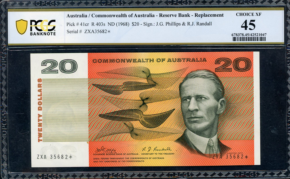 1968 Phillips-Randall ZXA (R 403s). Single star prefix. PCGS graded Choice XF 45 (42521047). Pop 2 with 6 higher. Rare.