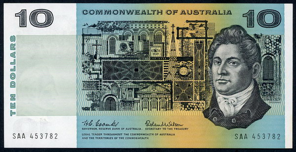 1966 Coombs-Wilson SAA (R 301F). First 10 Dollar prefix. Flattened of a centre fold, corner fold.