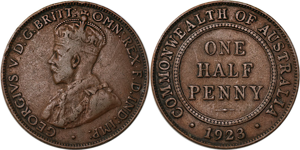 Halfpenny. 1923. Key date. PCGS graded F 15...