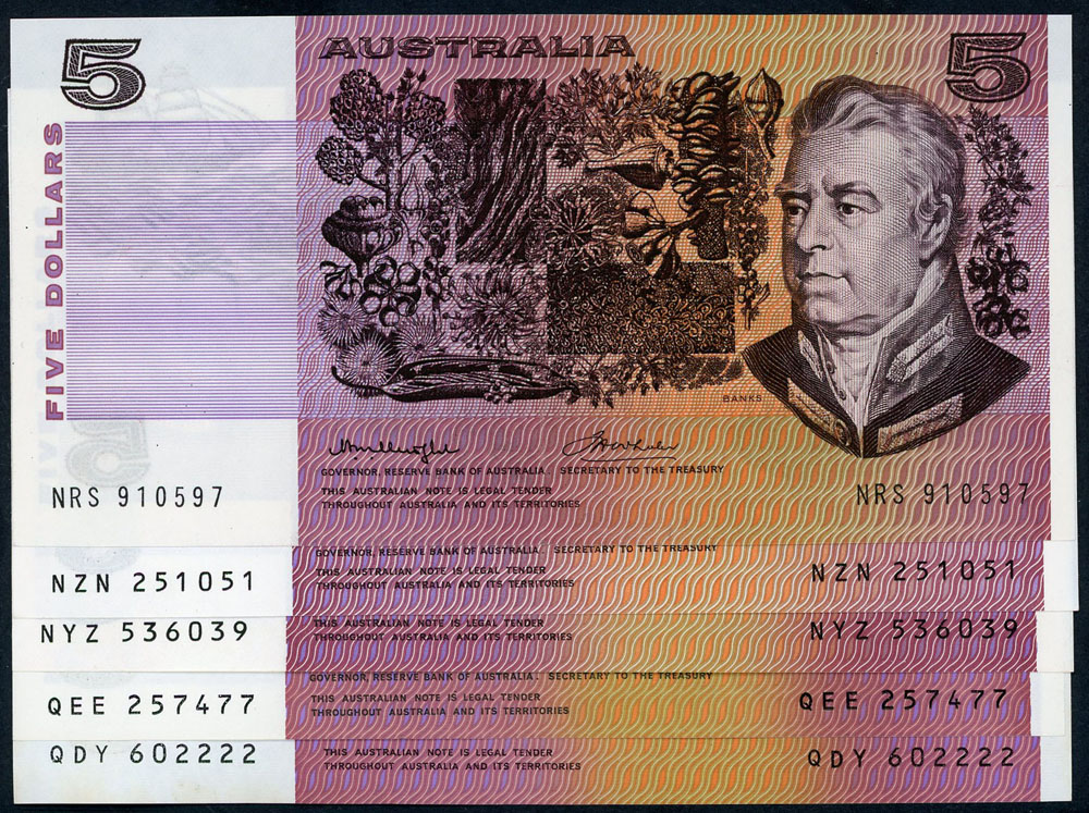 | Lot: 1027 Category: Australian Decimal Banknotes > Five Dollar |