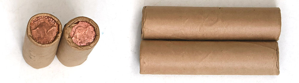 1963Y. Plain brown paper (bank) rolls of 40. End coins a little toned as usual. Assumed Unc. (2 rolls total).