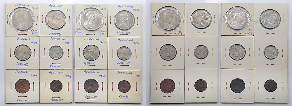 1969, 1970 sets of 6; 1 Cent to 50 Cent (from RAM Mint sets). Some tone. (12 coins total).