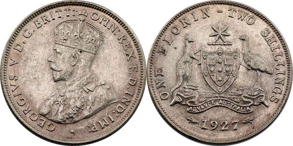 Florin. 1927 Canberra. Nice old tone with...