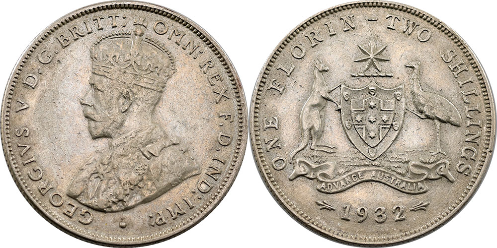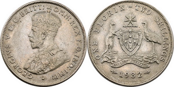 Florin. 1934/35 Melbourne Centenary. Old toned,...