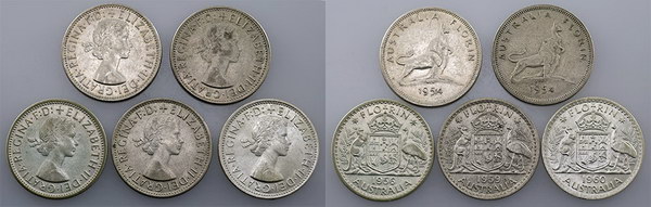 Florin. 1951 Federation (2), 1954 Royal Visit....