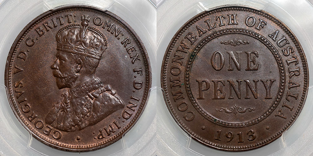 1913. PCGS graded MS 63 BN (33325247). Satin brown with a hint of red.